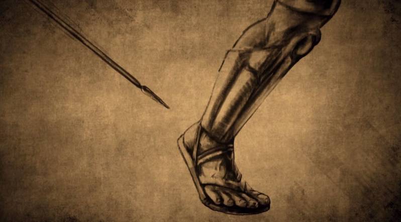 In de Trojaanse oorlog werd Achilles geraakt door een pijl in zijn hiel door Paris wat veroorzaakte in zijn dood ( zie afbeelding )